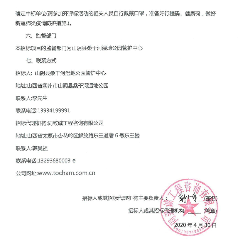 山阴县桑干河湿地公园2022年管护中心防治光肩星天牛、腐烂病工程 招标公告